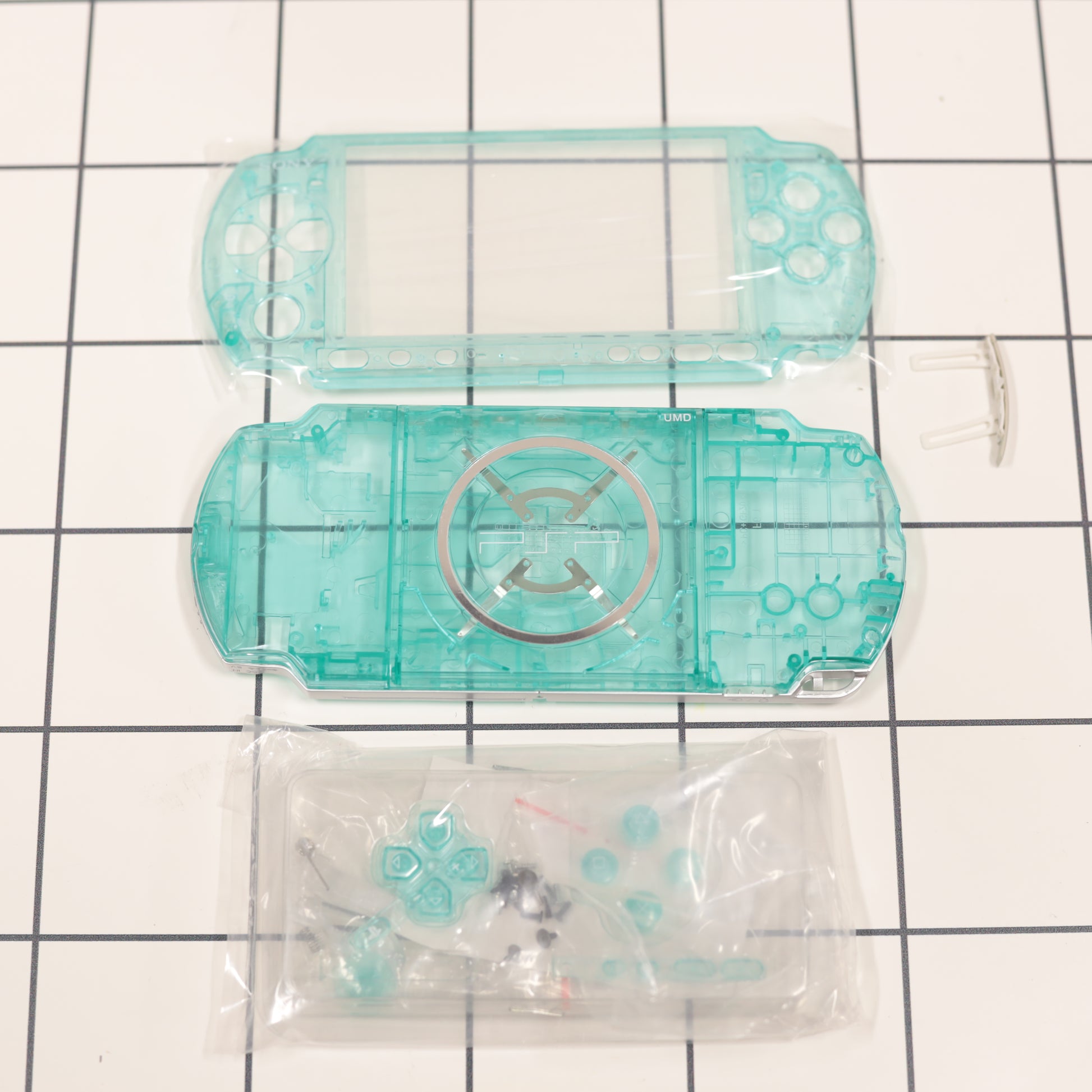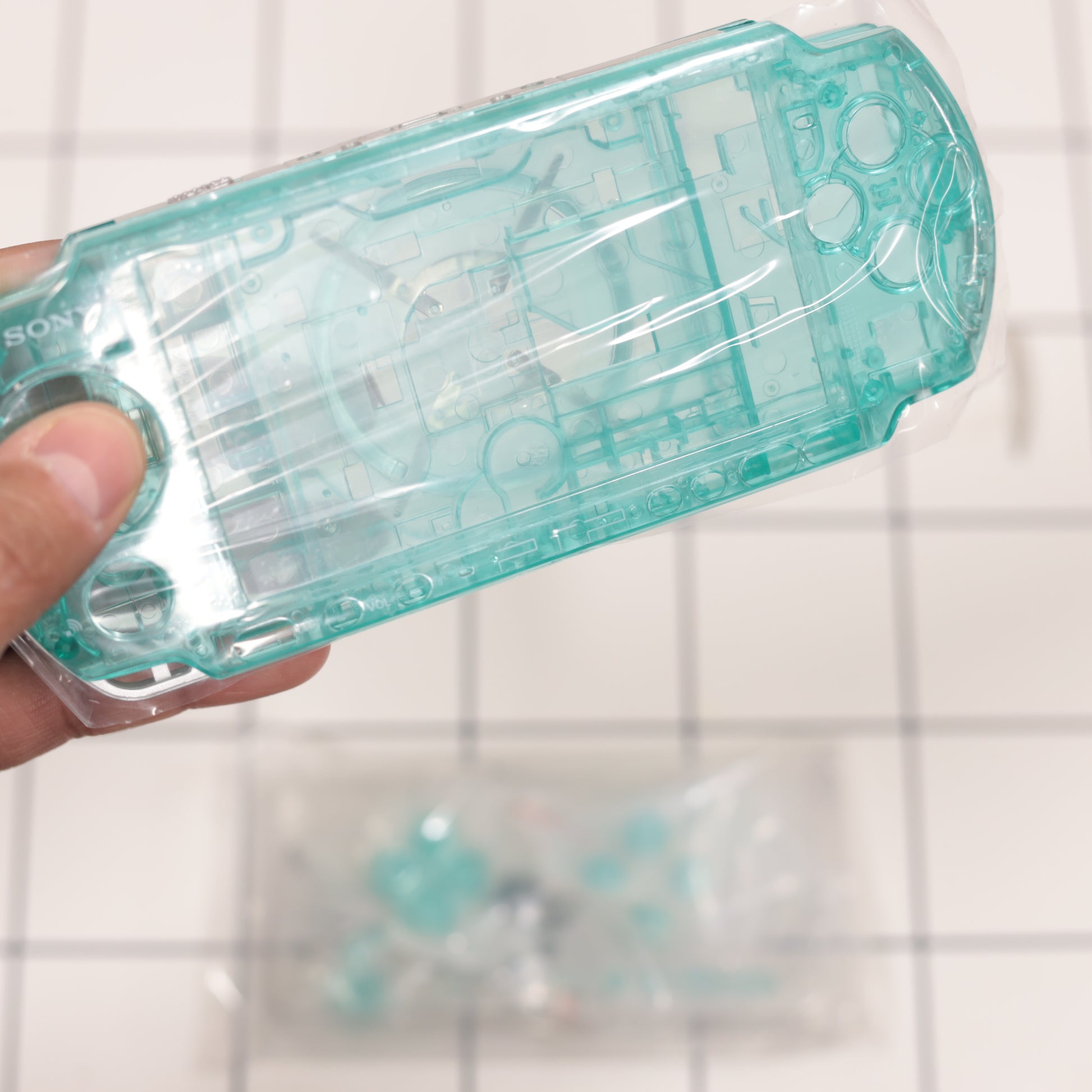 Keywords: PSP 3000 shell, PSP-3001 housing, green clear PSP shell, transparent PSP case, PSP mod parts, PSP restoration |