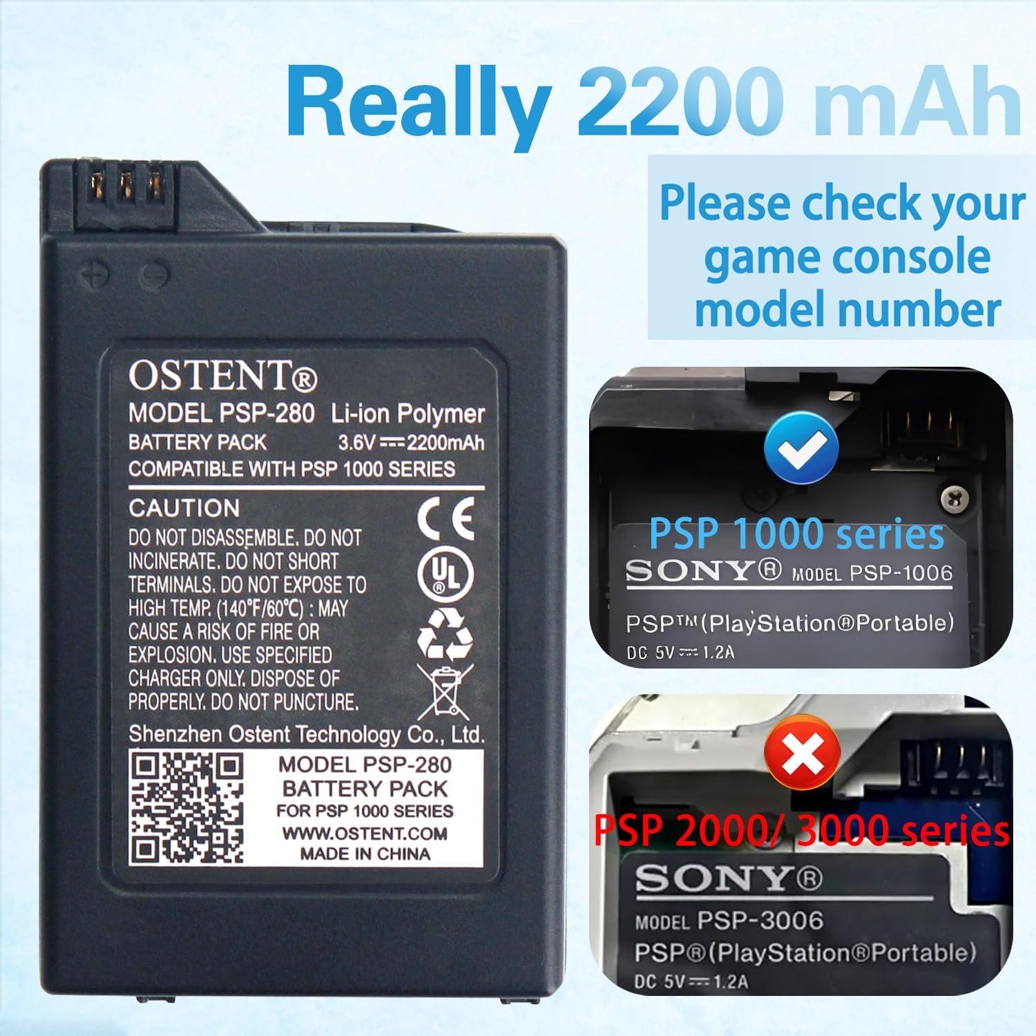 - 1 x 2200mAh OSTENT Battery for PSP 1000